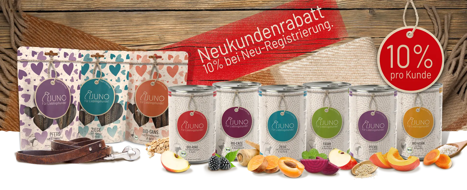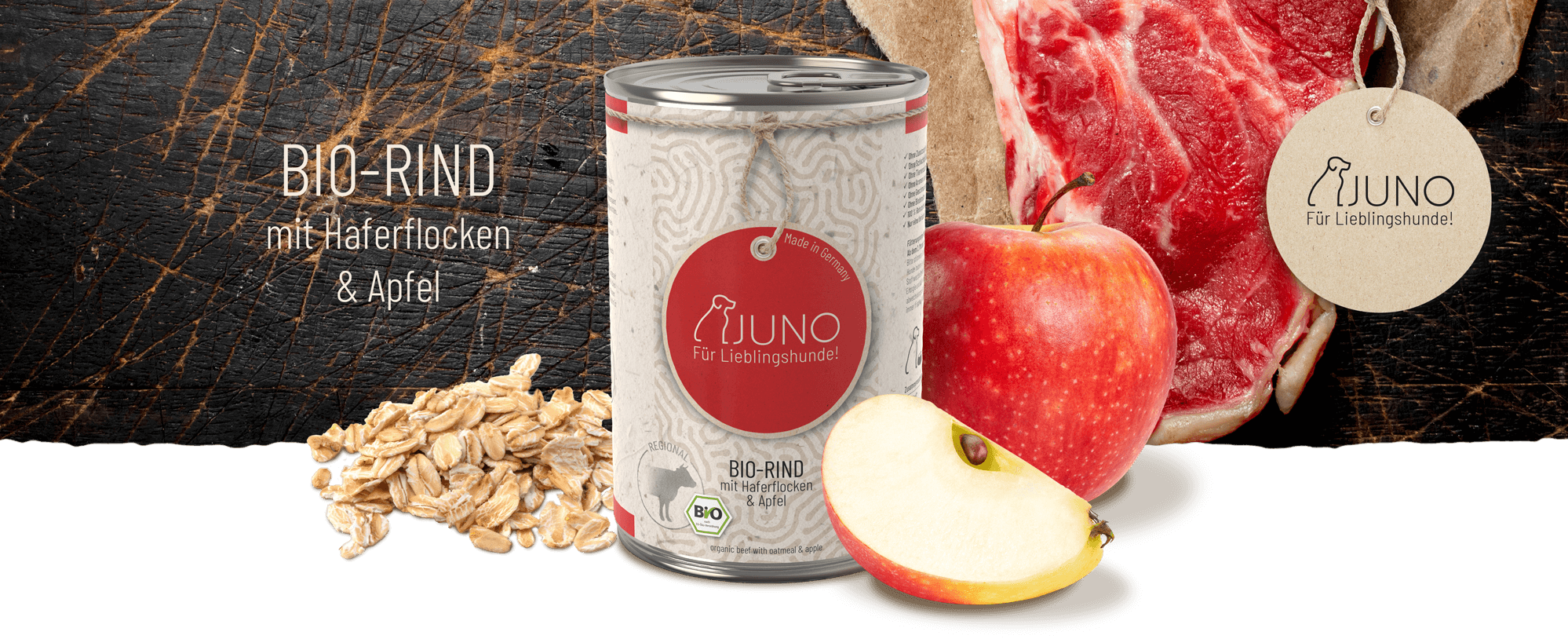 Unsere JUNO Rezepte werden hauptsächlich aus hochwertigen Bio-Zutaten hergestellt. Dadurch stellen wir sicher, dass Ihr Hund eine gesunde und natürliche Ernährung erhält. Unsere Produkte enthalten keine künstlichen Zusätze oder Bindemittel, sodass Sie sich auf die Reinheit und Qualität des Futters verlassen können.